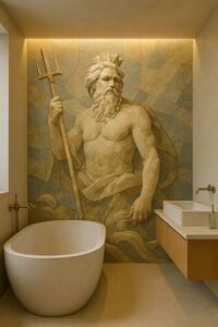 Влажные помещения традиционно ассоциируются с плиткой, но настенное панно из натурального камня