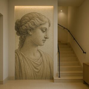 Каменное панно подходит для интерьеров разного стиля — от строгого минимализма до классики.