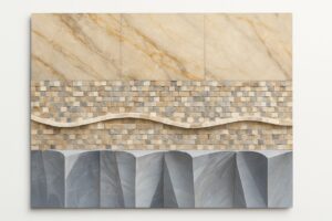 мягкий градиент или спокойный фон с лёгкой текстурой. По сравнению с керамикой каменная мозаика