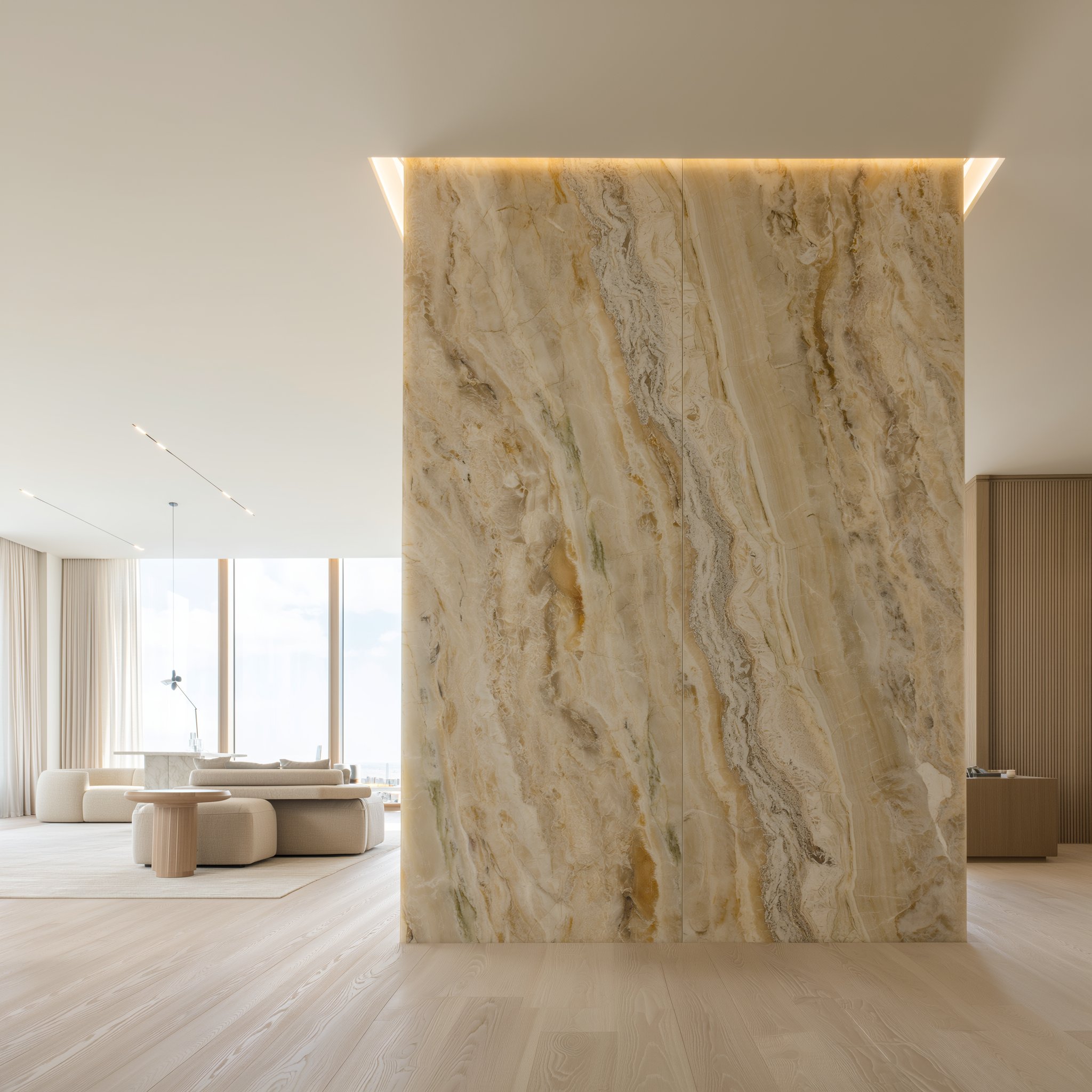 Даже один аккуратно подобранный слэб превращает обычный коридор в выразительный интерьерный эпизод.