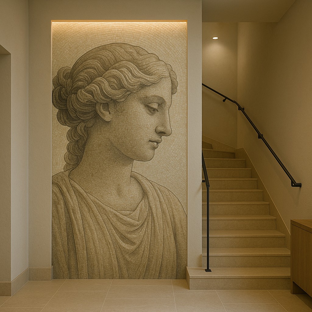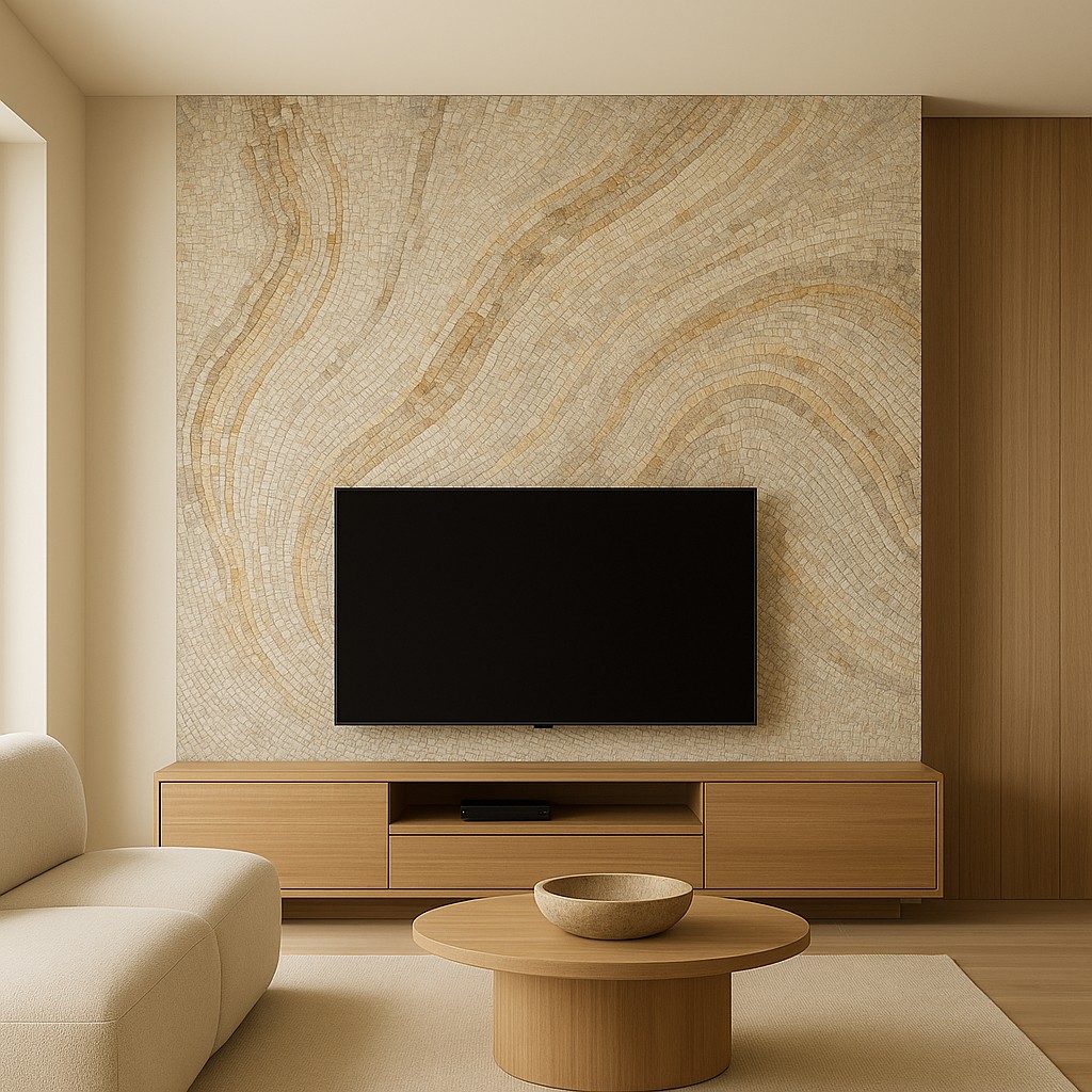 мягкий градиент или спокойный фон с лёгкой текстурой. По сравнению с керамикой каменная мозаика