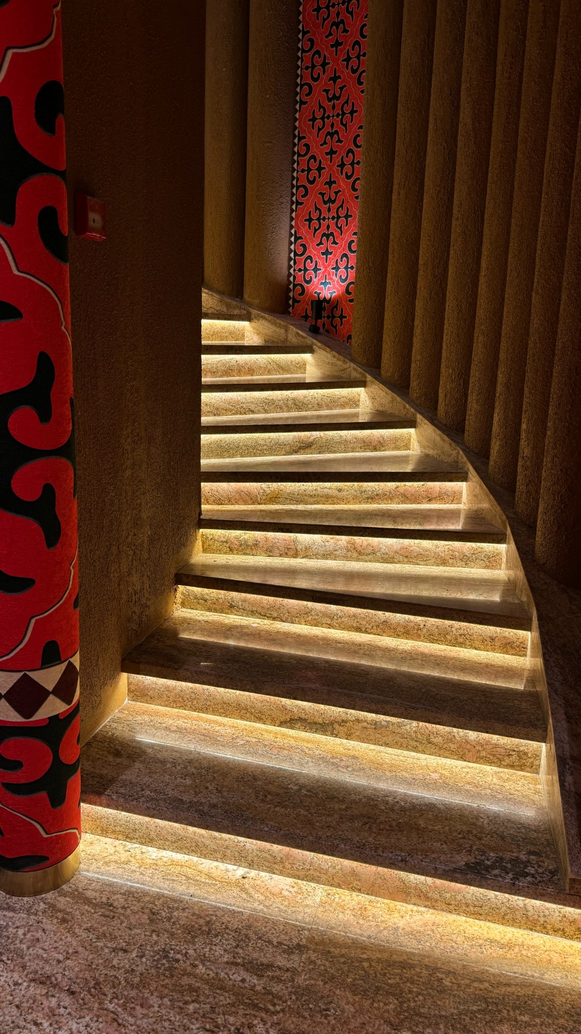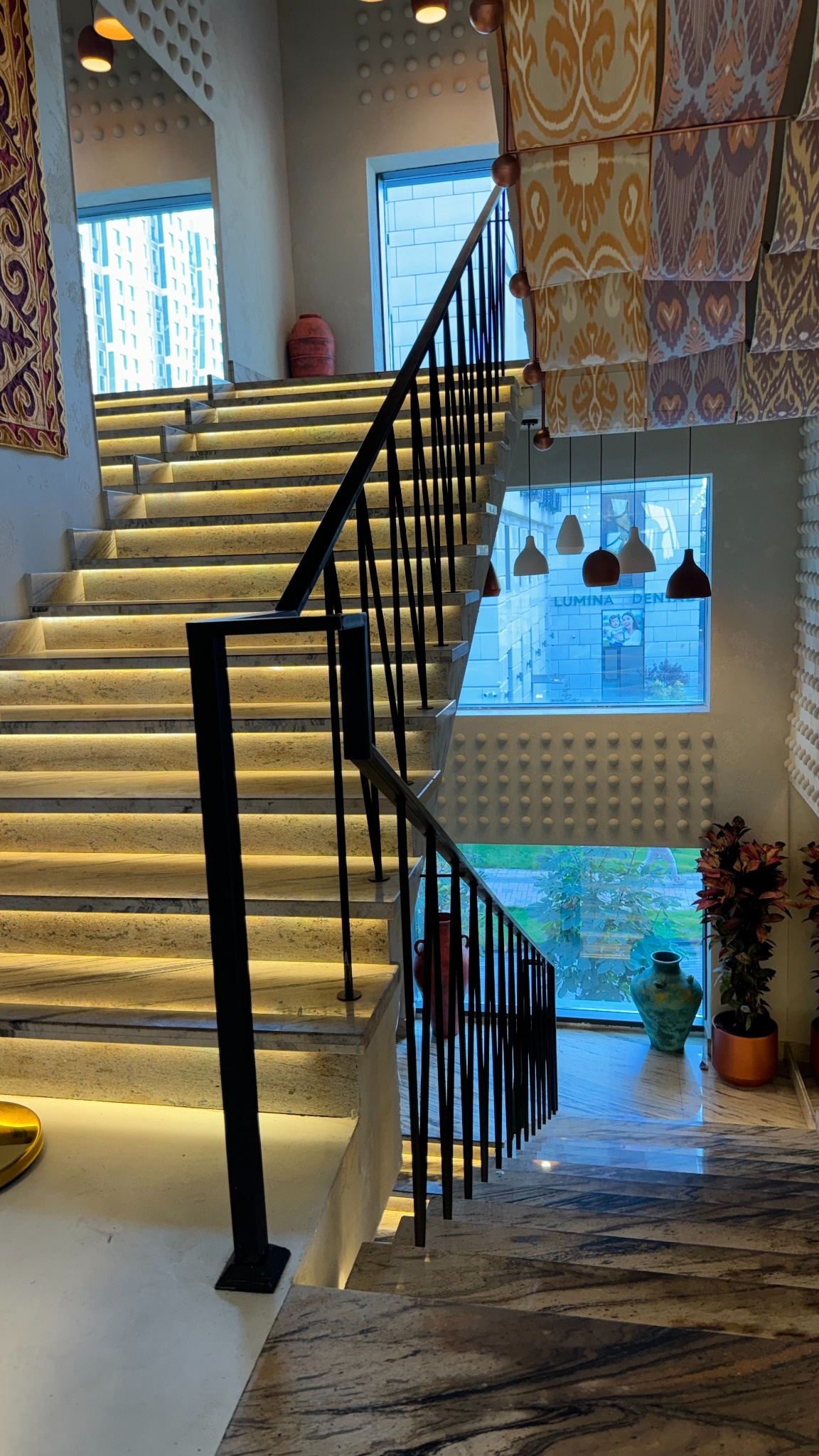Матовая, «живая» фактура, хорошо смотрится на маршах и подступёнках; доступны решения с заполнением пор. Подробнее о травертине.